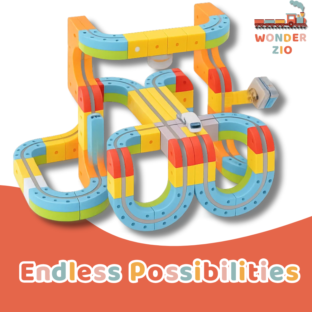 The Wonderzio MagniRail set comes with track pieces that snap together in seconds — no effort, no frustration.